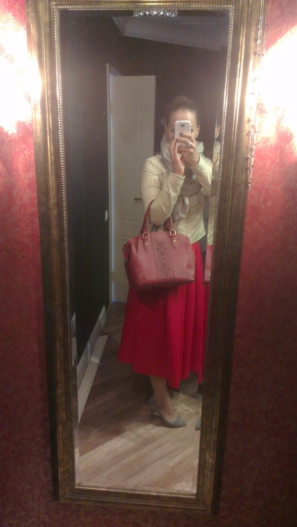 Красиво! Ремешок с юбочки лучше убрать. ..или одеть ремешок красного цвета, достойный, не дешевый, а то вид испортит.