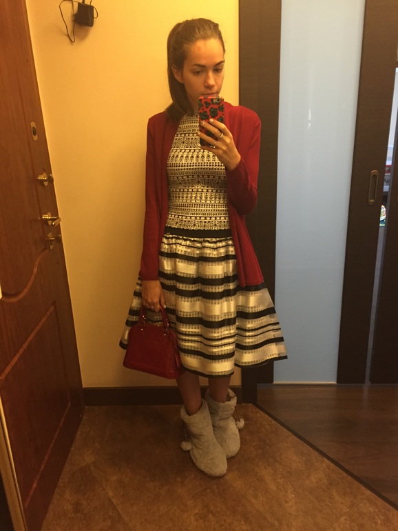 Нашлась в шкафу кофта, которую я в немецком хм схватила без примерки не знаю зачем, она xs и прям утягивает меня как колбаску, но тут мне нравится сочетание орнаментов