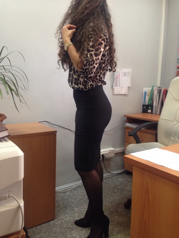 По итогу имеем: юбка карандаш, облипающая все прэлэсти, леопардовая блузка, распущенные волосы.
