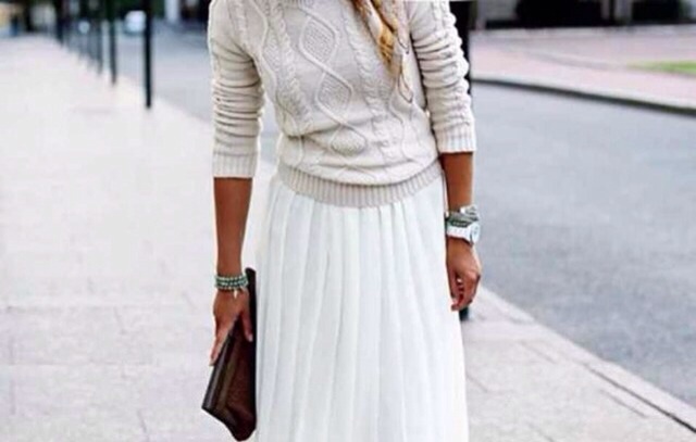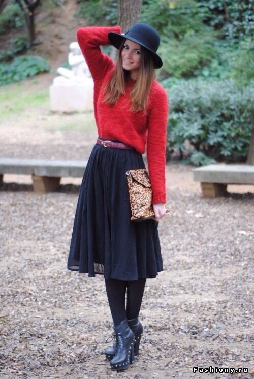Или я еще люблю на контрасте - кожаная куртка и грубые ботинки к ней. Или плоский ход и светлый свитер крупной вязки. Но это уже на осень варианты.