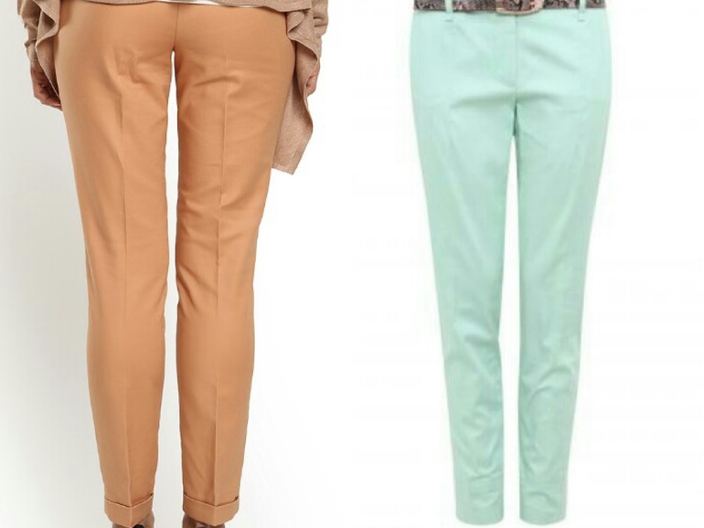 Бежевые и мятные. Хочу купить туфли чтоб подходили и к тем и к тем брюкам.
