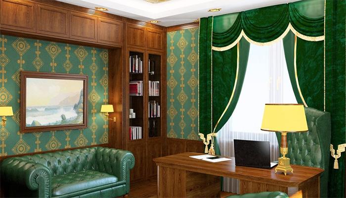 Было модно раньше такой темнозеленый цвет мягкой мебели сочетать с темным деревом (может, и сейчас модно). Вот прямо как у Вас на второй фотографии сочетание коричневого с зеленым.