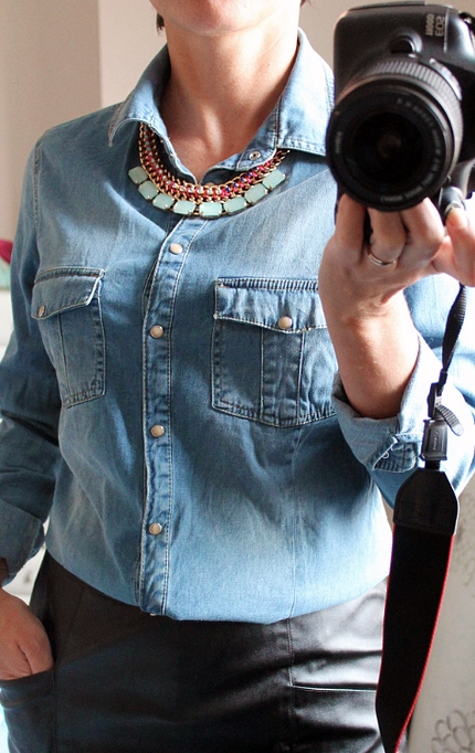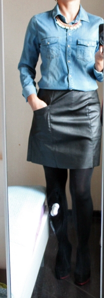 В джинсовой - да, в топе - нет. Топ с "бельевой" темой и кожаная юбка для меня перебор.
