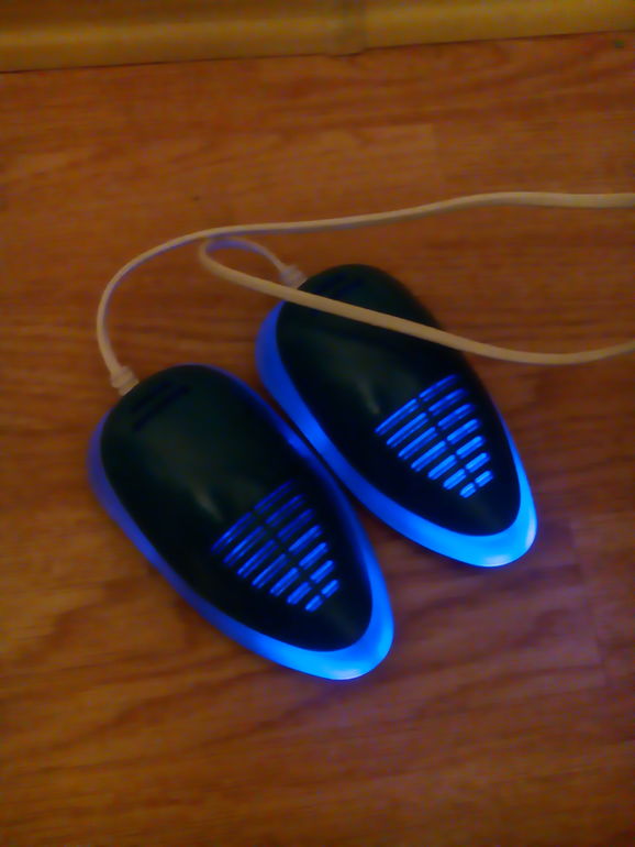 Если кожаная обувь, мою с мылом. Замшу и тряпочное - подошву водой, щеткой сам ботинок. Кожзам не ношу) Воском надо мазать после того, как обувь просохнет, поэтому утром или через какое-то время после мытья) Кеды мою только если очень грязные стали) Каждый день они не переживут)) УФ-сушка выглядит как вставка в мыс ботинка, ща покажу)