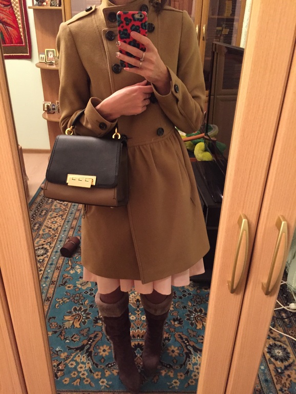 Начнем с сумки. Zac Posen. Ехала неделю. Маленькая и удобная за счет этой застежки незнаюкакзовется) покупалась сумка потомучтоскидка и под пальто😂 результат коллаборации: