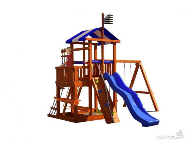 Про этот комплекс не подскажу,но мы два года назад на даче поставили другой.Купили с очень хорошей скидкой на Авито.Комплекс хоть и был бу,но в отличном состоянии.Вот он