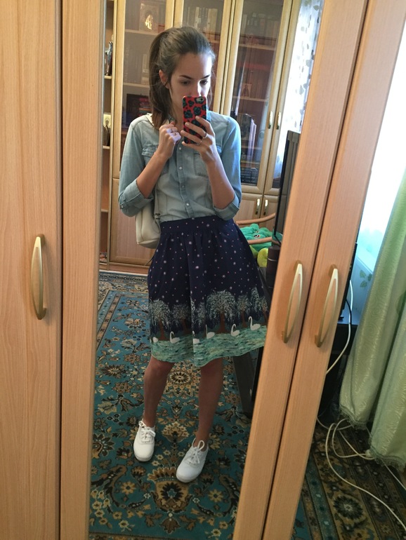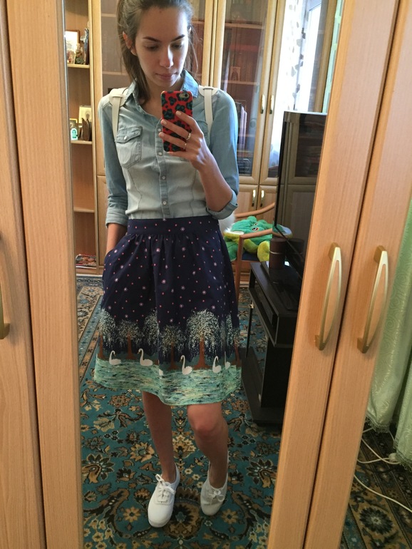 Приехала юбка с лебедями - плотный хлопок, мне оч понра) есть карманы) отлично вписались белые keds.
