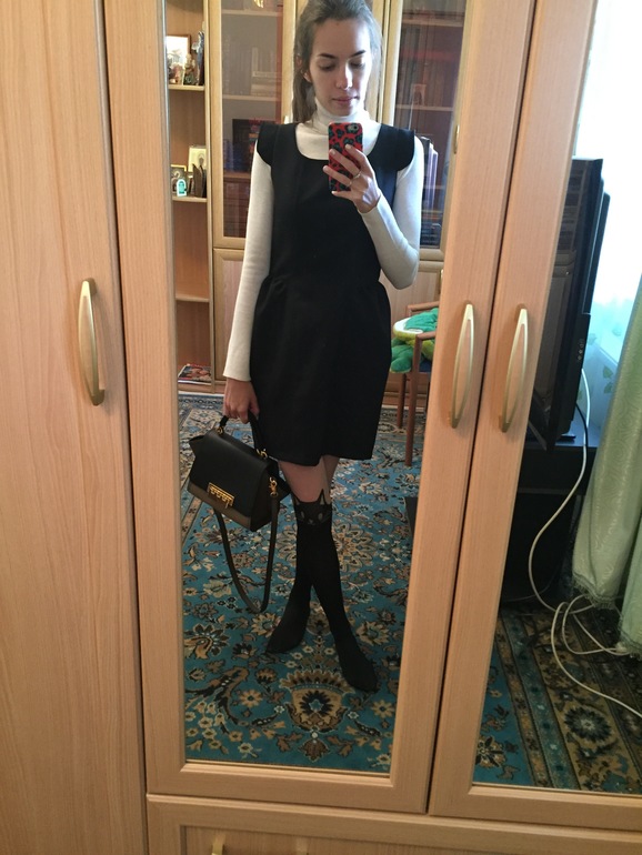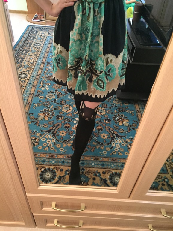 Колготки-котики. Обувь не придумала) ну она в кв, так что перебиваюсь 3-4 парами) новая водолазка из бершки - советую. купила еще подобные колготки, но муж сказал "так замужней женщине нельзя ходить"😂