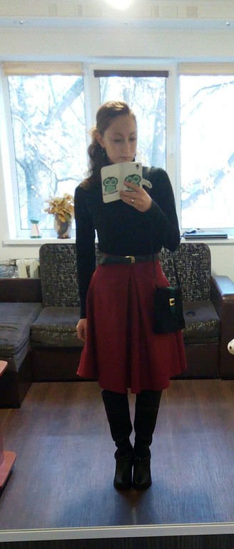 Мне не нравится ремень((( И верх бы повеселее подобрать. И обувь другую... А юбка классная)