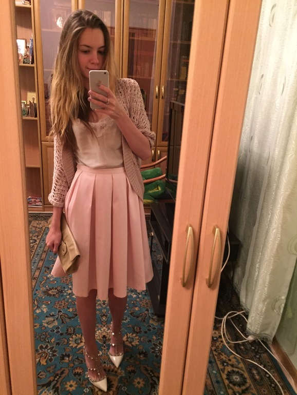 Юбка в кире пластининой) спасибо!!! У нее еще синие есть) в последнее время оч мне нравится кира) а кофта вот светлый беж) я ее сдавать хотела... Но нет) пристрою куда-нить!)