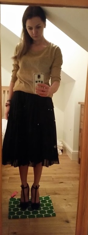 Согласна с девочками!, низ отличный, а блузка перебор. Что то как на первом фото - легкое и спокойное. С длинной цепочкой/кулоном, но тоже нежным. Свитерок тяжеловат материал и не совсем к юбке. А так красотка!) Туфли у этой фирмы удобные, мягкие? Оч красивые!