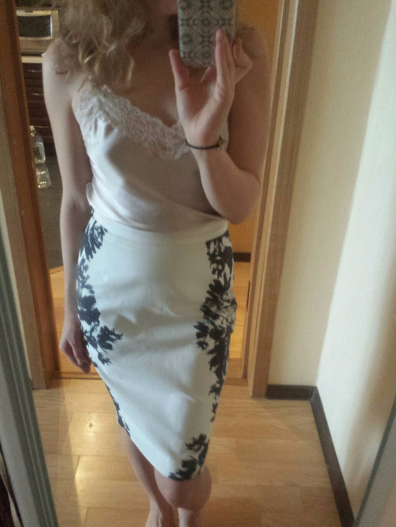 А вот вариант как хочу пойти в пятницу вечером с мужем на ужин. Или так можно идти только домой?) Под топом бюстгалтер - аля чашечки без лямок. Наверх накину светлый пиджак в тон юбке , но планирую снять (если осмелюсь))))