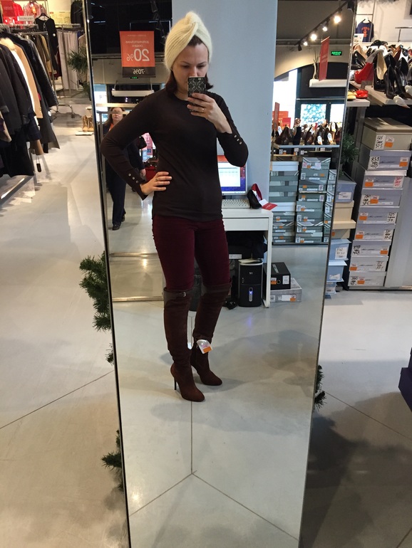 Давно искала себе серые замшевые ботфортики....И, О , радость...поехали в эту субботу мужу брючки покупать в Москву