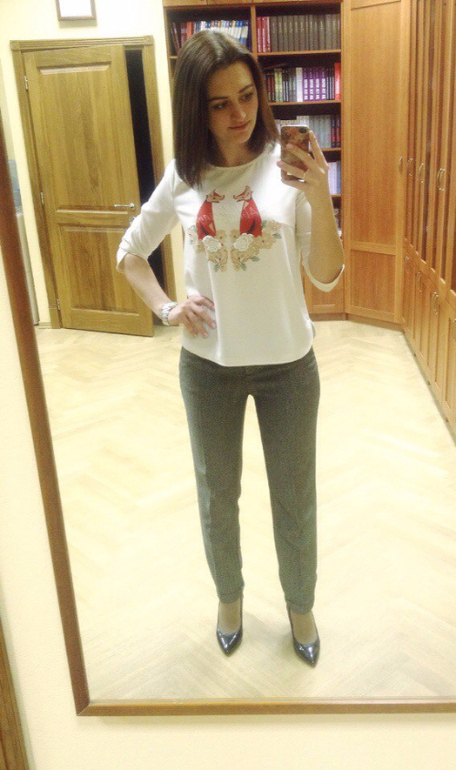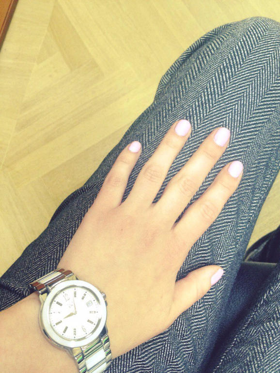Брючки, часы - супер! Кофточка такая, прости, я считаю для работы не подходит( слишком милая, не строгая. Маникюр - отличный - безе ням-ням))) это лак или гель-лак?