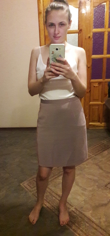 Мне нравится цвет, хотя не факт что он передан реально, не нравится крой, хотелось бы уже книзу, но если оставить в таком варианте то верх просится свитер оверсайз, или что то объемное