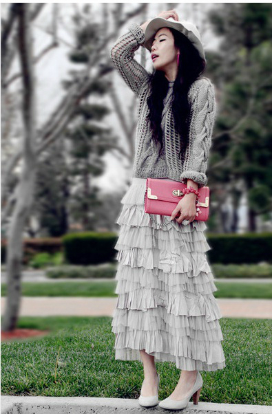 6. Свитер + юбка с оборками