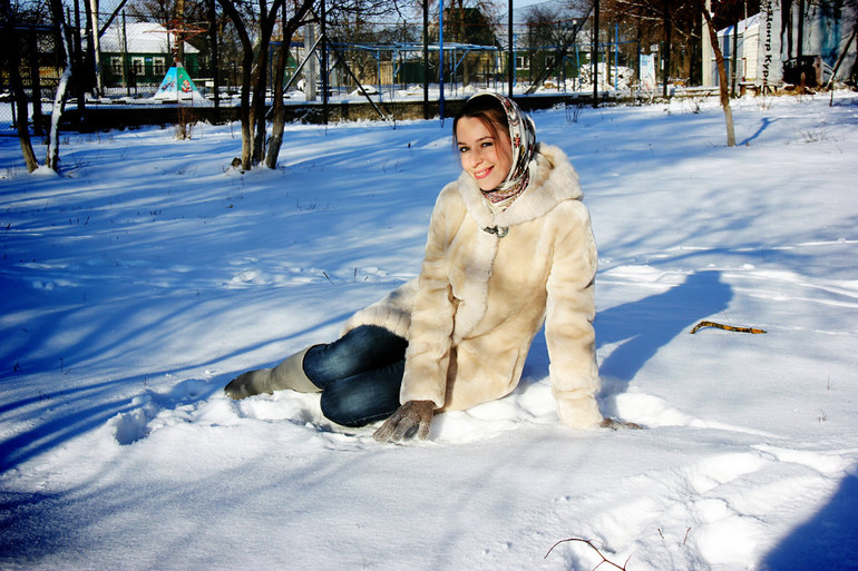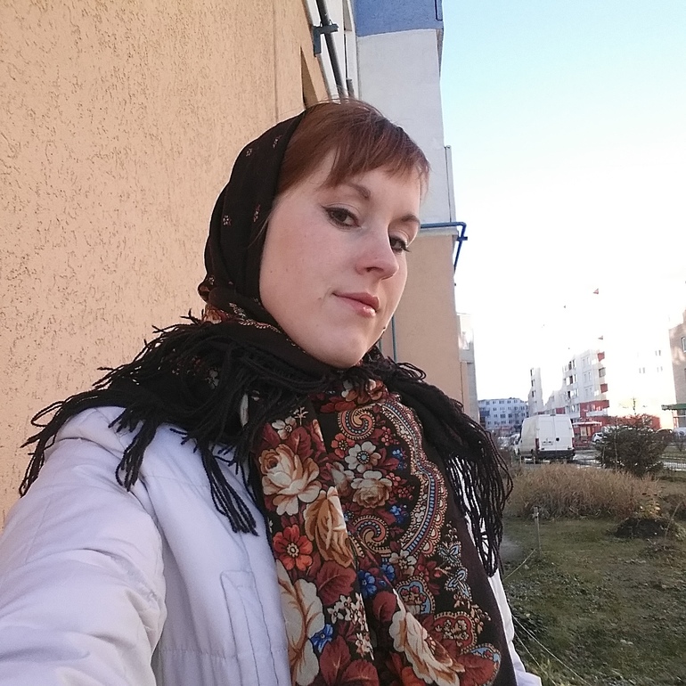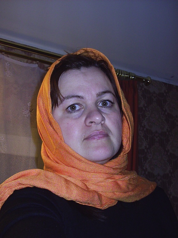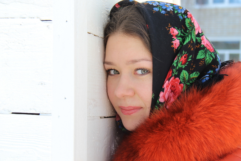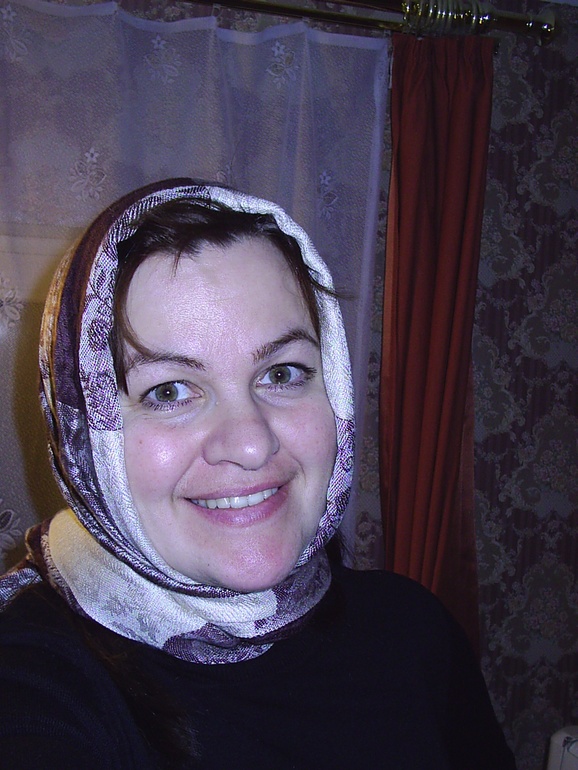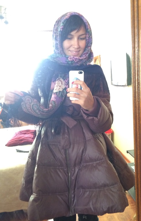 сейчас для тебя сфоткалась шарф накинула, как-бы платок, нос картохой, щёки на холоде у меня всегда красные, ну матрёна и никак иначе)))
