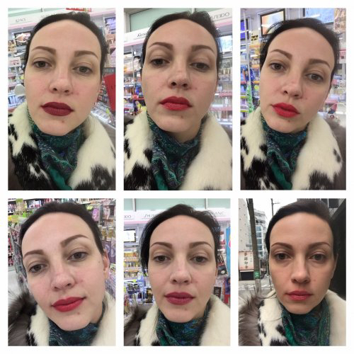 еще хочу рассказать о моем новом приобретении и об очередных трудностях, с которыми приходится сталкиваться девушкам европейской внешности, живущим в Японии. Как я ходила искать корректор для лица, моя эксперт посоветовала все же попробовать коррекцию, я послушная ученица, побежала в магазин. Косметика у нас продается в одном месте, что несказанно удобно, целый этаж косметики и парфюмерии, разные бренды на любой вкус, я готова целый день ходить по этому этажу. Это просто Рай! но! дело в том, что вся косметика адаптированна для японской кожи, структуры и цвету. Зачем японке корректор для лица ближе к розовому?! правильно, не зачем, поэтому тот корректор, который мне посоветовала Аня, просто отсутствовал, его нет, не было и не будет в продаже! И пошла я от одного бренда к другому, мне уже было все равно, какой бренд, я просто пошла по всем, спрашивая, интересуясь, пробуя и фотографируя, фотографируя..... Аня терпелива получала фото и давала наставления. Дети скакали в колясках и не хотели спокойно сидеть, консультанты терпеливо предлагали все возможны варианты. Но вот что предлагали во всех брендах - либо темные тона, отдающие рыжиной и ржавчиной