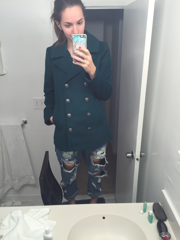 Тут все лучшее сразу😂 На самом деле все теплые вещи остались дома, а бушлат j crew и джинсы one teaspoon забрала в посыли от подружки. Ну что сказать... Джинсы 24р и они мне велики размера на 3-4... Муж сказал выкинуть и чтоб глаза его не видели... А бушлат клевый мягкий и зелеееный)))