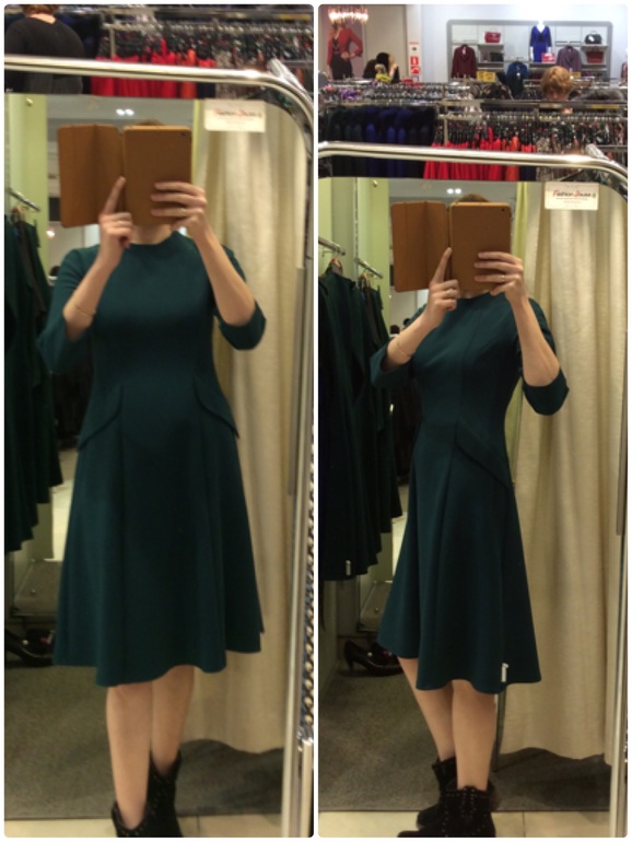Миди это же по середину икры. У вас на фото по середину колена. Это не миди. Зелёное мне не нравится, может спасут ботфорты и акссесуары? Покажите серое на себе! И цвет и форма нравится, только длина нет. Но я не модница