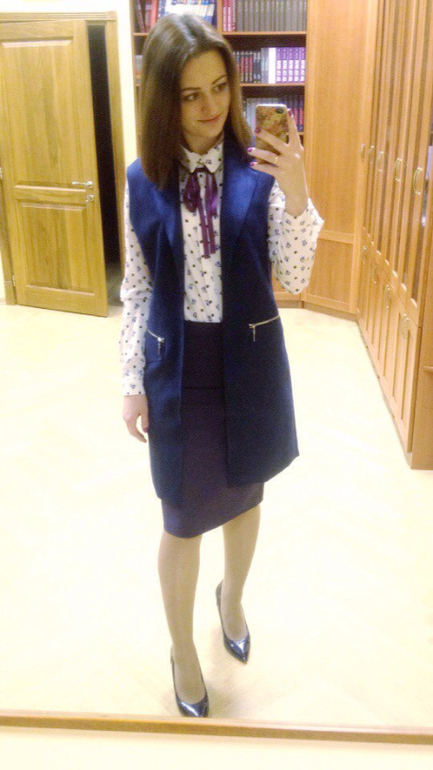 Правда, в основном в интернете луки с подобными жилетами - все с брюками...наверное, так и правда лучше, но фиолетовых брюк у меня пока нет ) Приобрету - попробую )