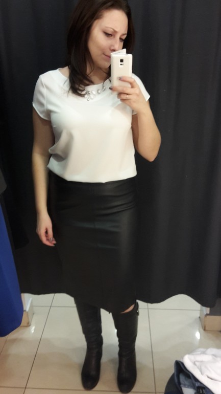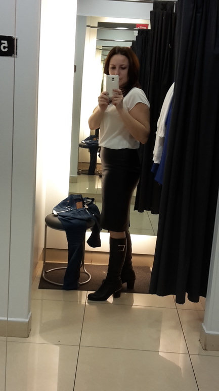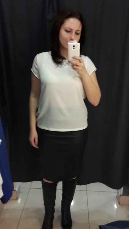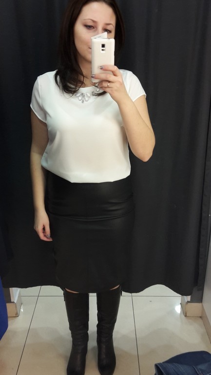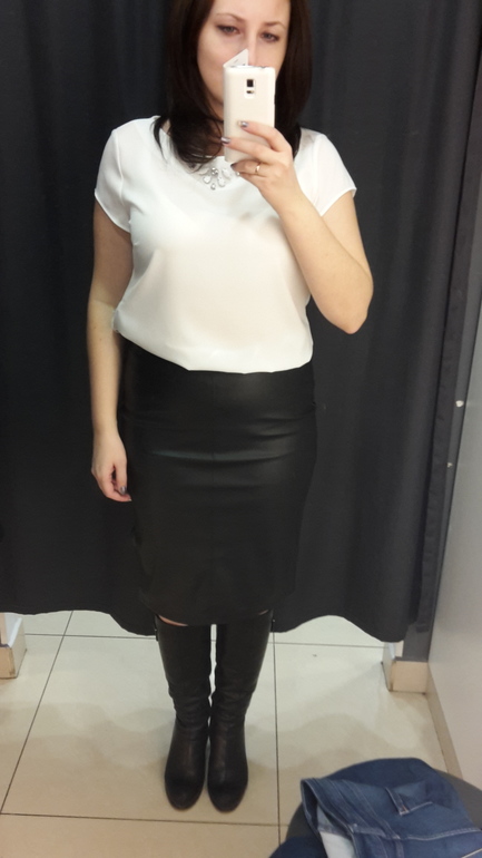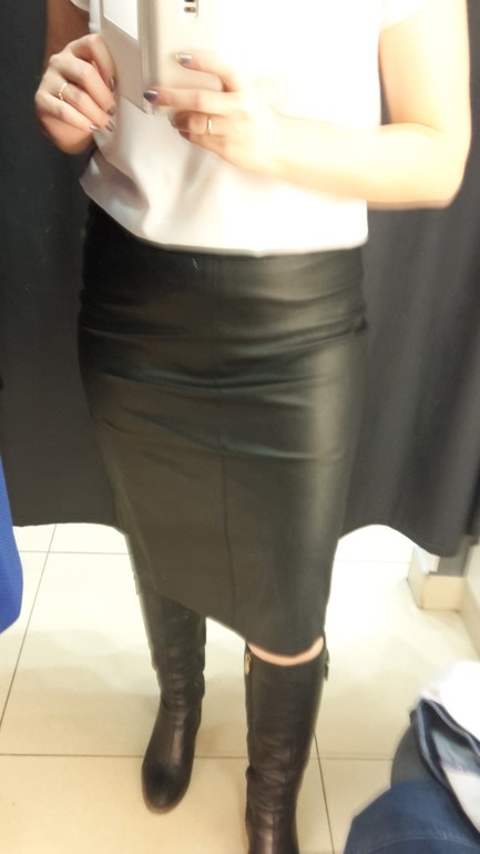 Юбка кожанная понравилась, но смущает, что опять сборит. И животик мой. Брать или нет?