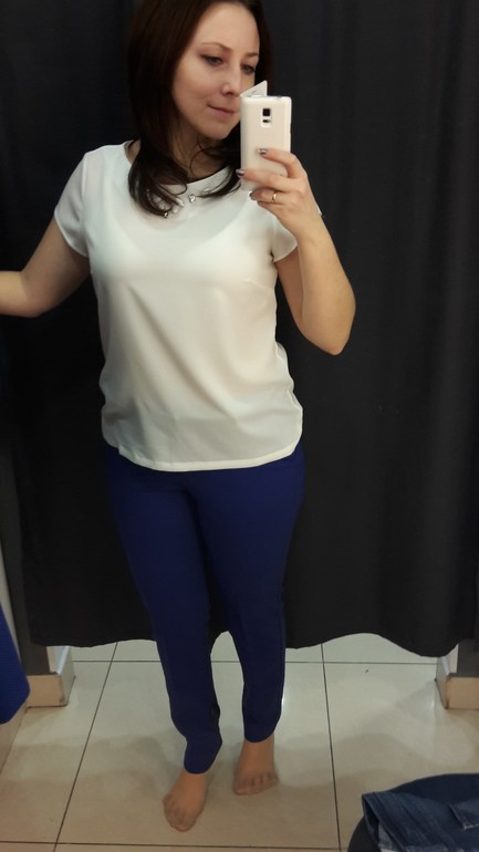 Блузка , брюки все отлично. Платье хочется вытачки поглубже в районе талии, но в целом сойдет. Юбка точно нет , в обоих вариантах впечатление, что мала. У вас нестандартная фигура, красивая грудь, бедра и масс маркет все портит и очень рекомендую шить на заказ юбки и платья -футляры с рукавом.