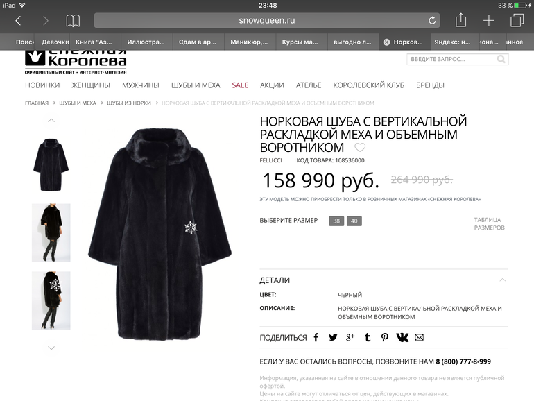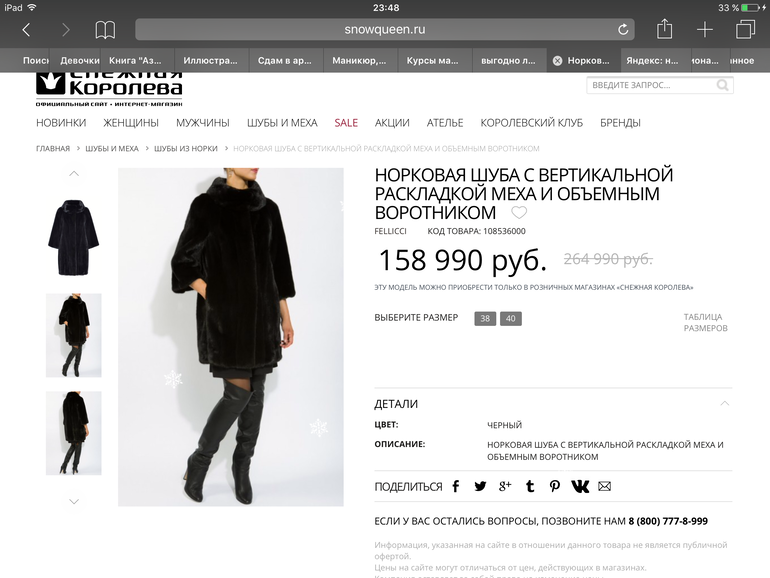 Верхняя одеждаДевочки,доброй ночи.Помогите развеять сомнения. Обычно вообще не пишу,решаем все с мужем, а тут прям метания.В общем есть сумма на покупку норковой шубки,150 тыщ+ 10 максимально.Наш день сегодня начался с поездок.В общем выбрала 3 модели:1. В шоу-руме-поперечка 90 см,была без капюшона и рукав 3/4, завтра привезут с капом и рукав полный,цвет графит,стоит 115 тыщ,заявили,что на каждую модель сертификаты и паспорт имеются и шубы-Италия, мех хороший ничего не скажу. 2. В Снежной Королеве,зашла, померила и прям снимать не хотелось,она,как шёлк, цвет черный, цена-159 практически уже со скидкой.Смущает в ней :широкий воротник,под него платок надо будет и рукав 7/8.Но я беру себе не на каждый день,а на выход.Мужу понравилась.Приехала,рассказала свекрови,та грит, что шуба типа не практичная.Мое мнение,у меня практичный пуховик,с ребёнком на улицу я в ней не пойду гулять.Вот шубка из СК