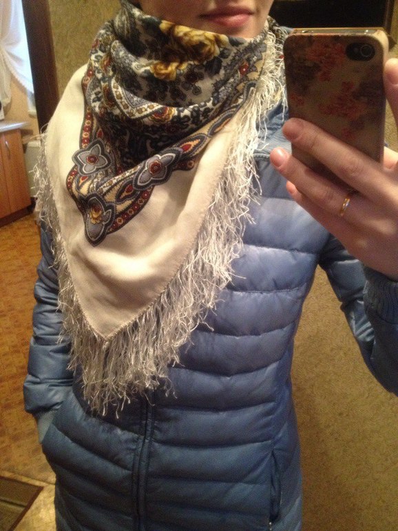 А это мой самый первый платок. мама подарила мне его за день до рождения дочки ) 28 декабря ) Тут я толстая, беременная, за 10 часов до встречей с дочкой )