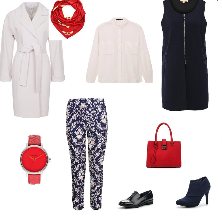 Вот вам пара примеров)Блузку светлую по отдельности не носить, только если чем то затемняете, но вам эта светлота, холоднота и приглушенность все равно вверху обязательно нужны, т.к. вы лето)блузку расстегивать, вырез нужен обязательно.Красный шарфик, оттенок холоднее нужно найти, как на сумке, чтобы синева в красном просматривалась)Это не капсула, так комплекты просто, чтобы собрать капсулу, вы наверно уже поняли нужно проводить долгие поиски)