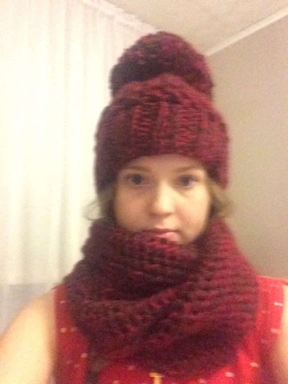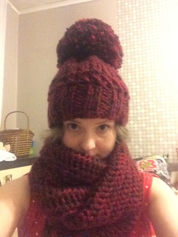 Связала шапку и шарф, помпон впервые делала сама и что-то размахнулась!))))