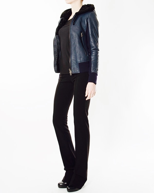 Черная кожа, серый мех, все натуральное, классика, третий год безвылазно лежит в шкафу)))