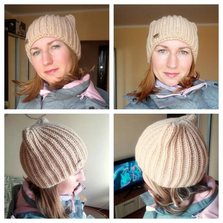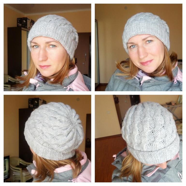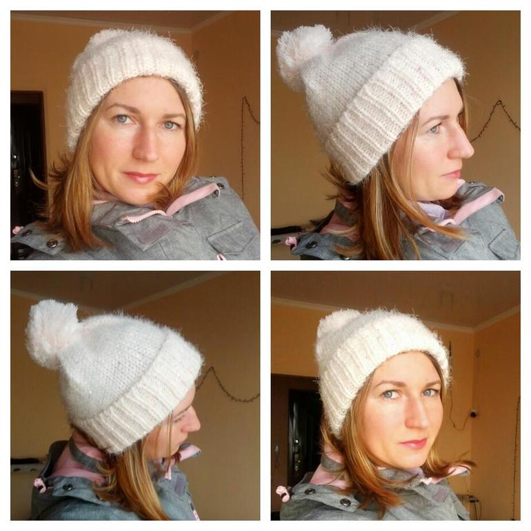 У меня серая и розова с напуском и одна с помпоном и без помпона. Вот она и смотриться как на 1ом 2ом фото:-) Мне с шапками очень тяжело. На картинках они так смотряться, а на мне по другому