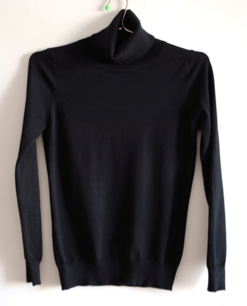 Девочки посоветовали мне купить черную водолазку, но не акцентировали на ней внимание. Как только я нашла недорогую хорошую водолазку, сразу же заказала. Сидит хорошо, цвет базовый, ко многим вещам подходит
