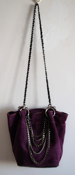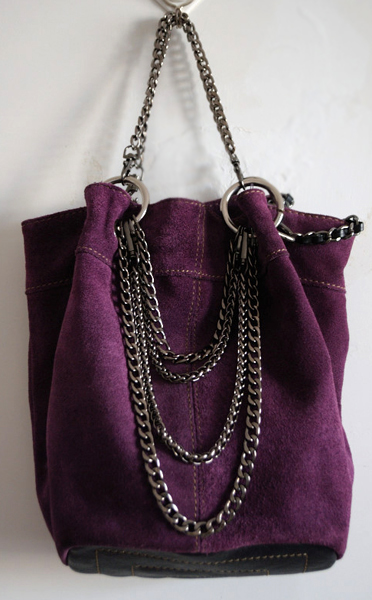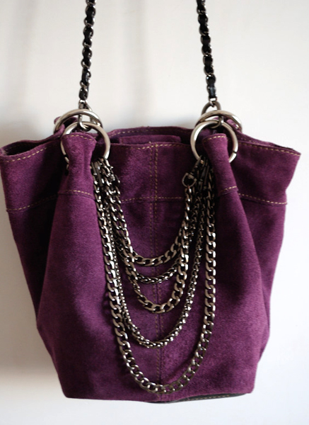 У меня была сумка, которую я не хотела бы выбрасывать, она красивого цвета и из натуральной замши и кожи. Катя предложила ее переделать, убрать ручки, и заменить их цепочками. Можно сказать, у нас была операция по спасению сумки). Обошлась эта операция нам в 65 юаней(10$). И вот результат) Мне очень нравится, сама бы до такого решения я не додумалась. Катя, огромная благодарность тебе за такую необычную идею))