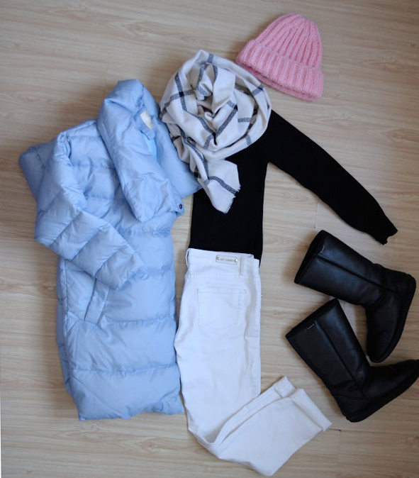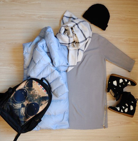 Сейчас зима и жуткий холод, у нас постоянно ниже -20 градусов и жуткий ветер, поэтому в гардеробе мы все же решили оставить угги (которые многим не нравятся). Мой образ жизни -это почти ежедневная учеба, гуляние с малышкой(в более теплые дни), редкие встречи с подругами, на основании данных условий мы старались выбрать наиболее удобную одежду, также подобрали пуховик, с которым можно носить рюкзак.