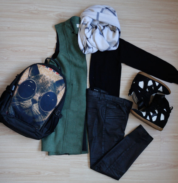 Это мегапокупка)Но с шарфом мы немного помучались, хотелось найти шарф, который можно вписать и в образы гранж. Попадалось много клетчатых шарфов, но нужен был не с простой клеткой, а как бы с полосками и он нашелся) Идеальный, широкий, длинный и шерстяной.