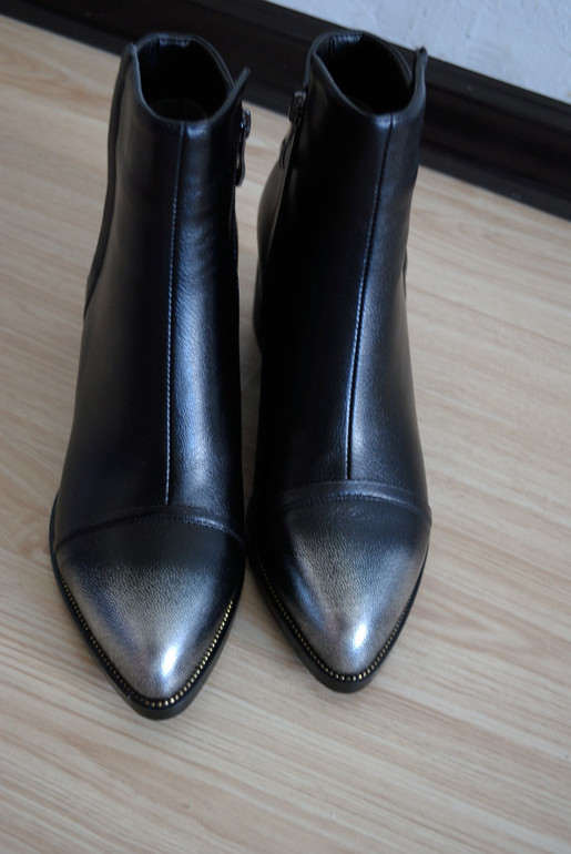 Это мегапокупка номер два, после шарфа) Нашла их Катя, и они всем пришлись по душе. Необычные серебристые носы придают ботинкам изюма, но от этого они не становятся менее универсальными. Подходят и к юбкам и к брюкам. Удобные и внутри у них небольшая теплушечка, можно будет носить в холодную погоду