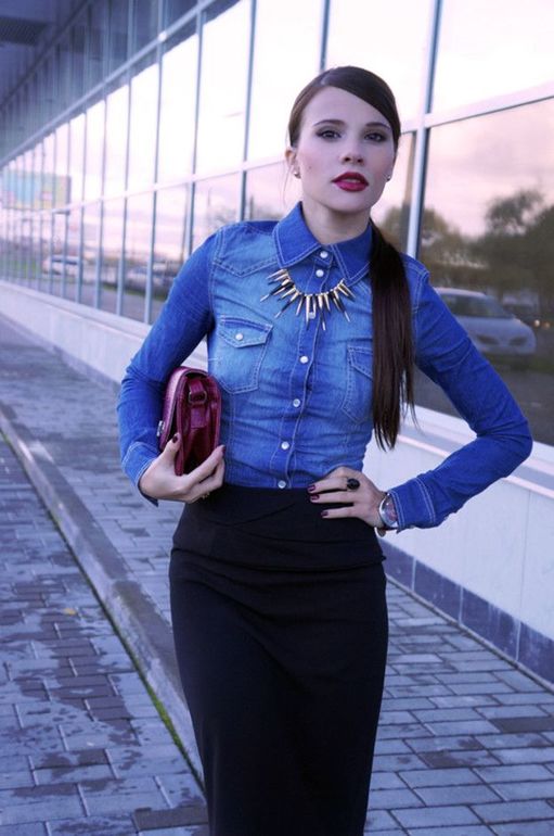 ОдеждаКупила я джинсовую рубашку и сделала подборку ,
