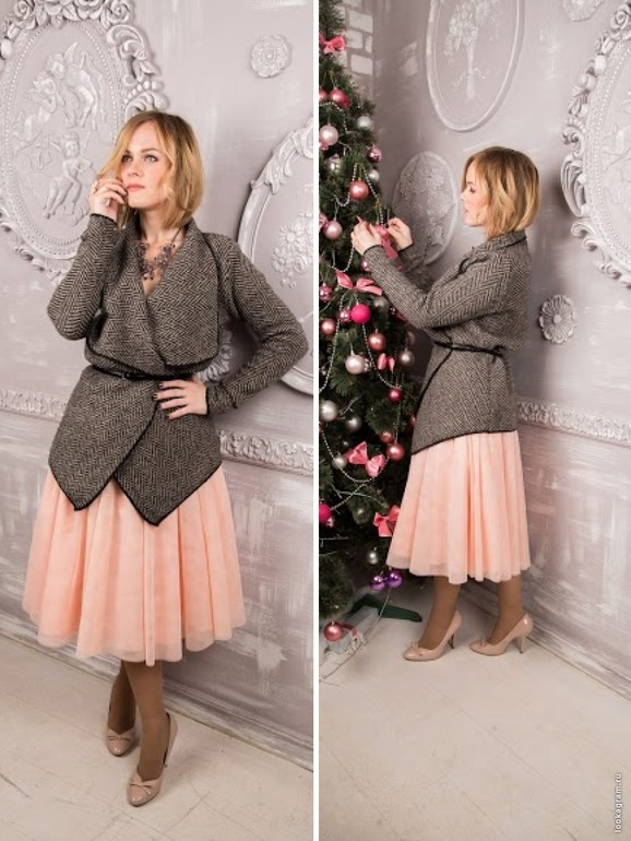 красиво, только в варианте с шифоновой юбкой кажется, что вы пришли на праздник легко одетая и кавалер поделился пиджаком)