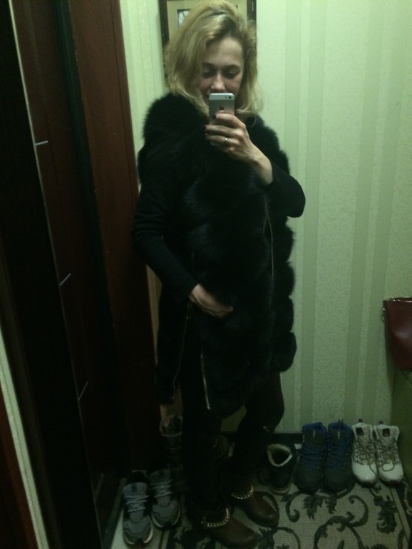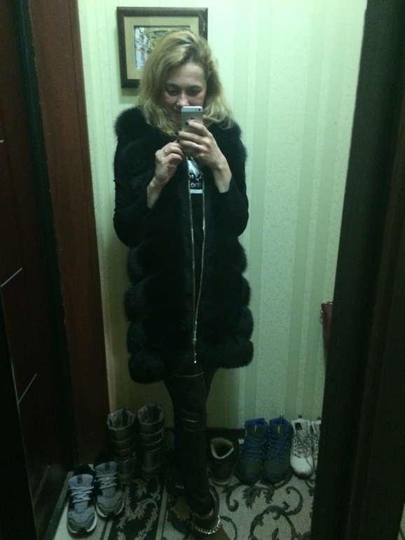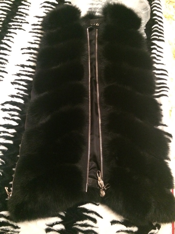 Детально если говорить...то она черная как смола( мех лиса) , с шикарными молниями( фурнитура на высшем уровне)....расстегивается даже по бокам...для удобства, для вождения машины...