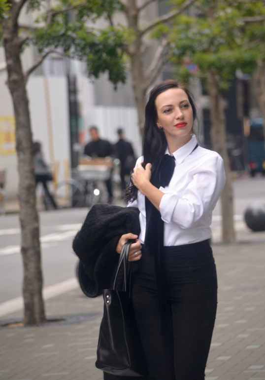 еще один рубашечный. Особо мне такое носить некуда, но с некоторыми изменениями можно и с мужем на выход. Бант, говорите, большой. Ну на тот момент был только такой из Зары, планирую его носить как шарфик, а вот для банта купила шифоновый из страдивариуса. Можно заменить и на обычную ленту