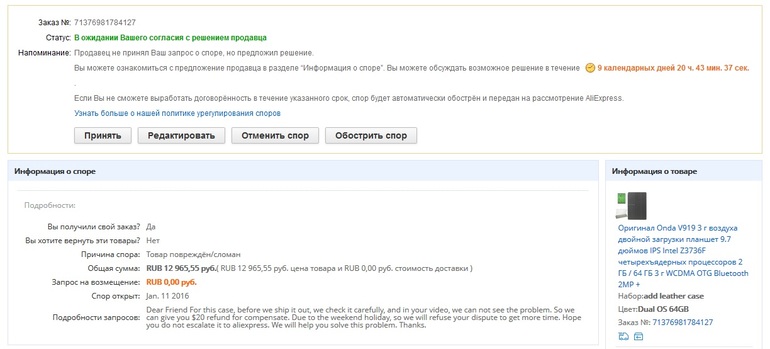 Помогите пожалуйста с ведением спора на Алиэкспресс. Первый раз вообще!