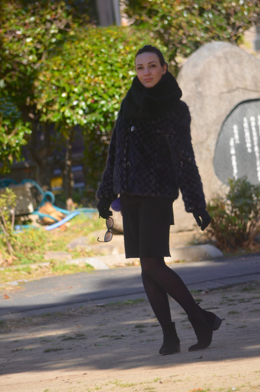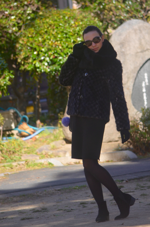 обувь портит всю красоту, такие укороченные сапожки почти всегда и на всех смотрятся не очень, хотя конечно понимаю они практичные, их лучше носить только с джинсами-брюками, а под юбку либо туфли или ботиночки на шпильке либо сапоги до колена.