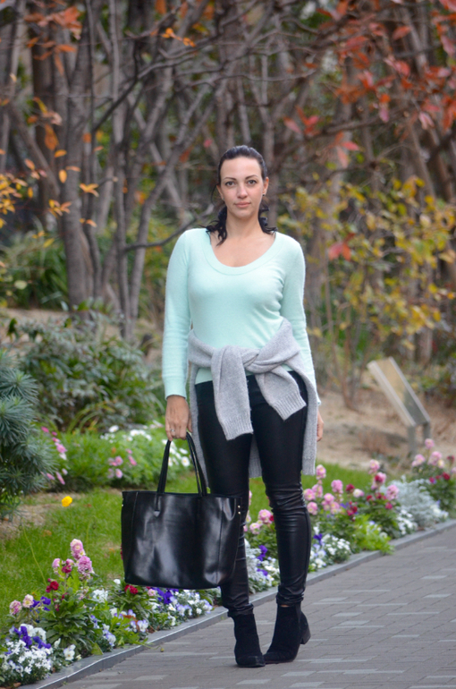 Свитер на джемпер странно смотрится, а так мне оч нравятся на вас кожаные штанцы ;) Кардиган бы черный сюда!