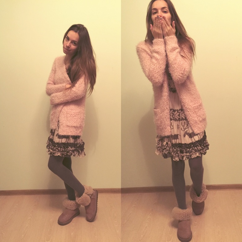 У первых желтых росси цвет был не очень и они грязные уже, бежевые дг были с браком, ну а в желтые чу я влюбилась сразу🙈 А розовые.. Ну они же розовые!!! И еще я купила штаны в кире за 800р) довооольная) ну и бабуля связала мне свитер к нг. Далее все это добро в лучках😂
