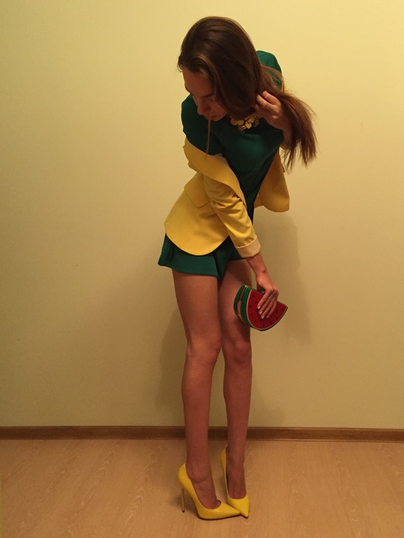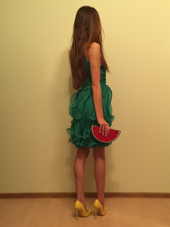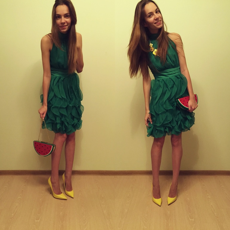 образ с зеленым платьем и сумочкой-арбузик очень понравился, я прямо влюбилась!