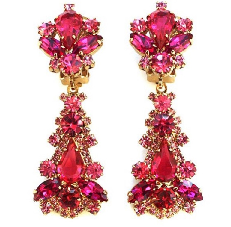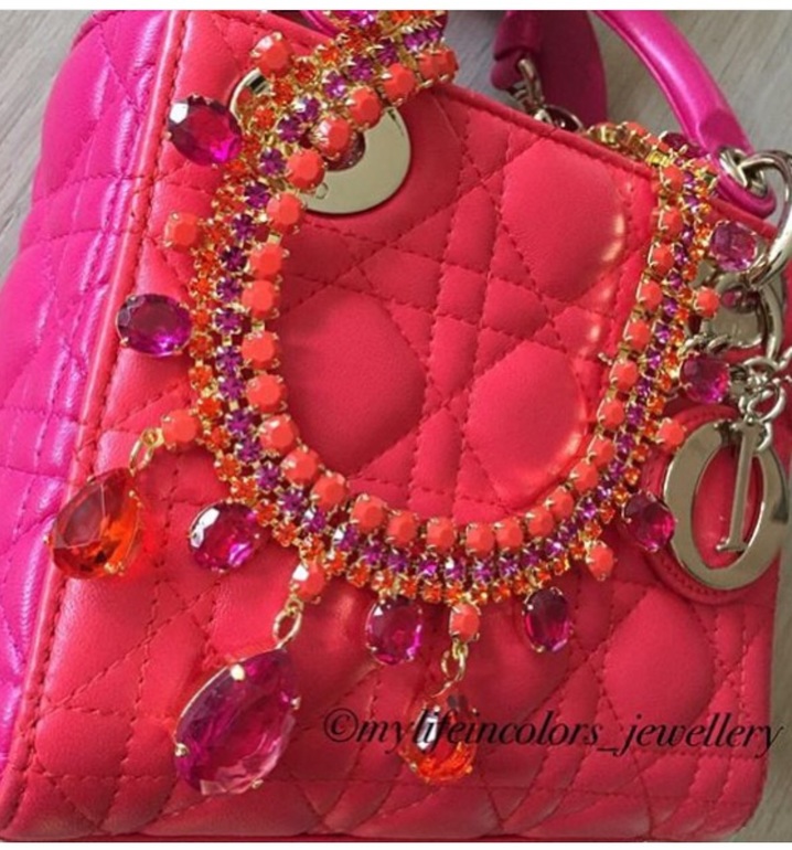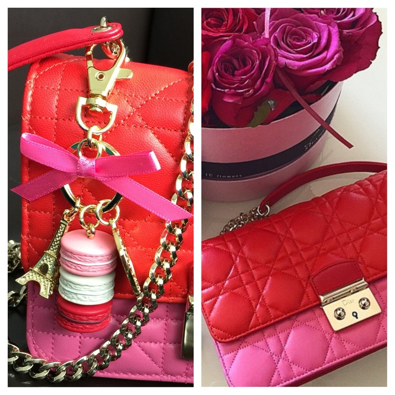 Я просто не смогла найти фотографии, где и одежда, и аксессуары в розово-красных тонах.