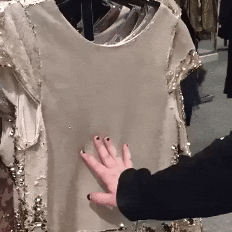 Только вечером....там блестки пришитые определенным образом....обратной матовой стороной...когда рукой проводите получается переворачивается на глянцевую !!!! Все гениальное просто😝😝😅