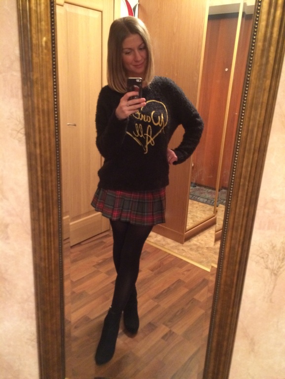 Ну вообще-то я бы надела таки мини, если очень хочется))) Только с плотными черными колготками. С такими сапогами даже короткие ноги смотрятся обычно бесконечными.